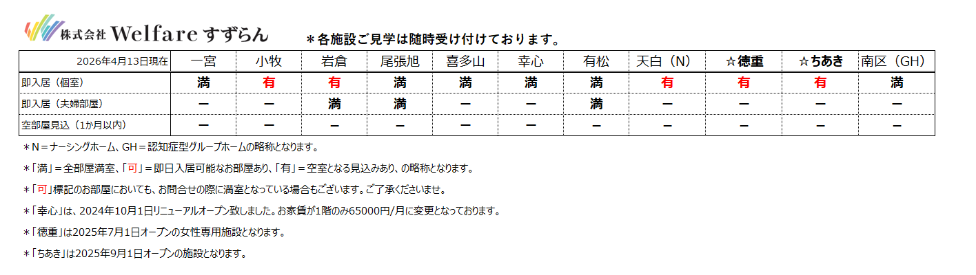 (空室情報など)