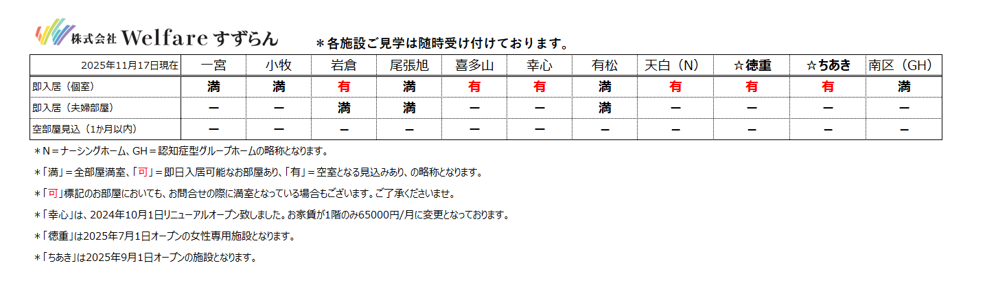空室情報(11月2週目)