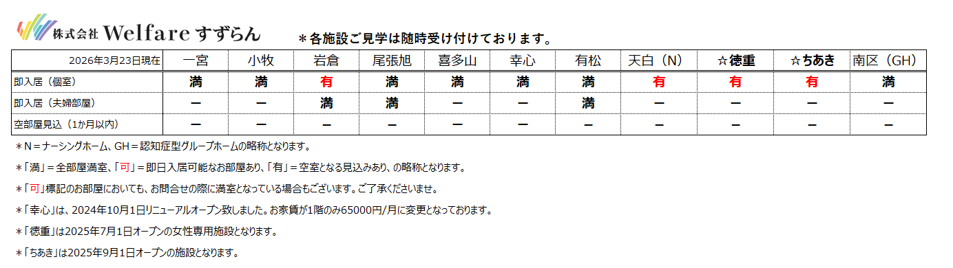 (空室情報など)