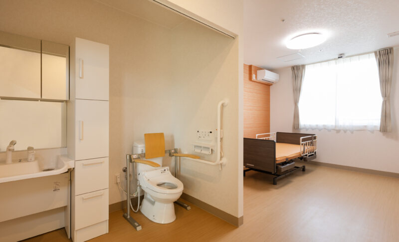 プライバシーに配慮された見守りカメラを備え、転倒などの際は機器が検知してスタッフがかつけます。